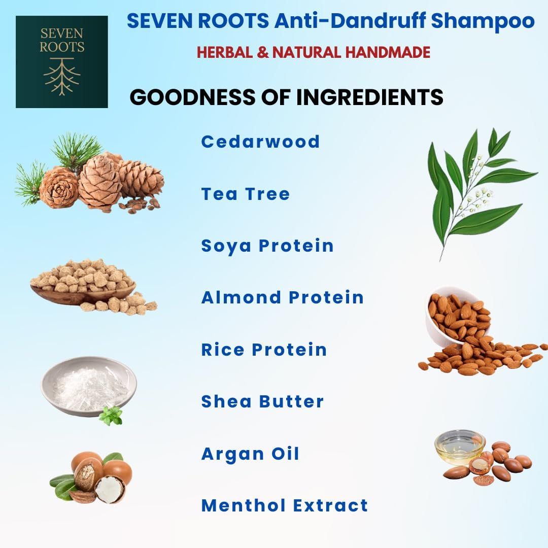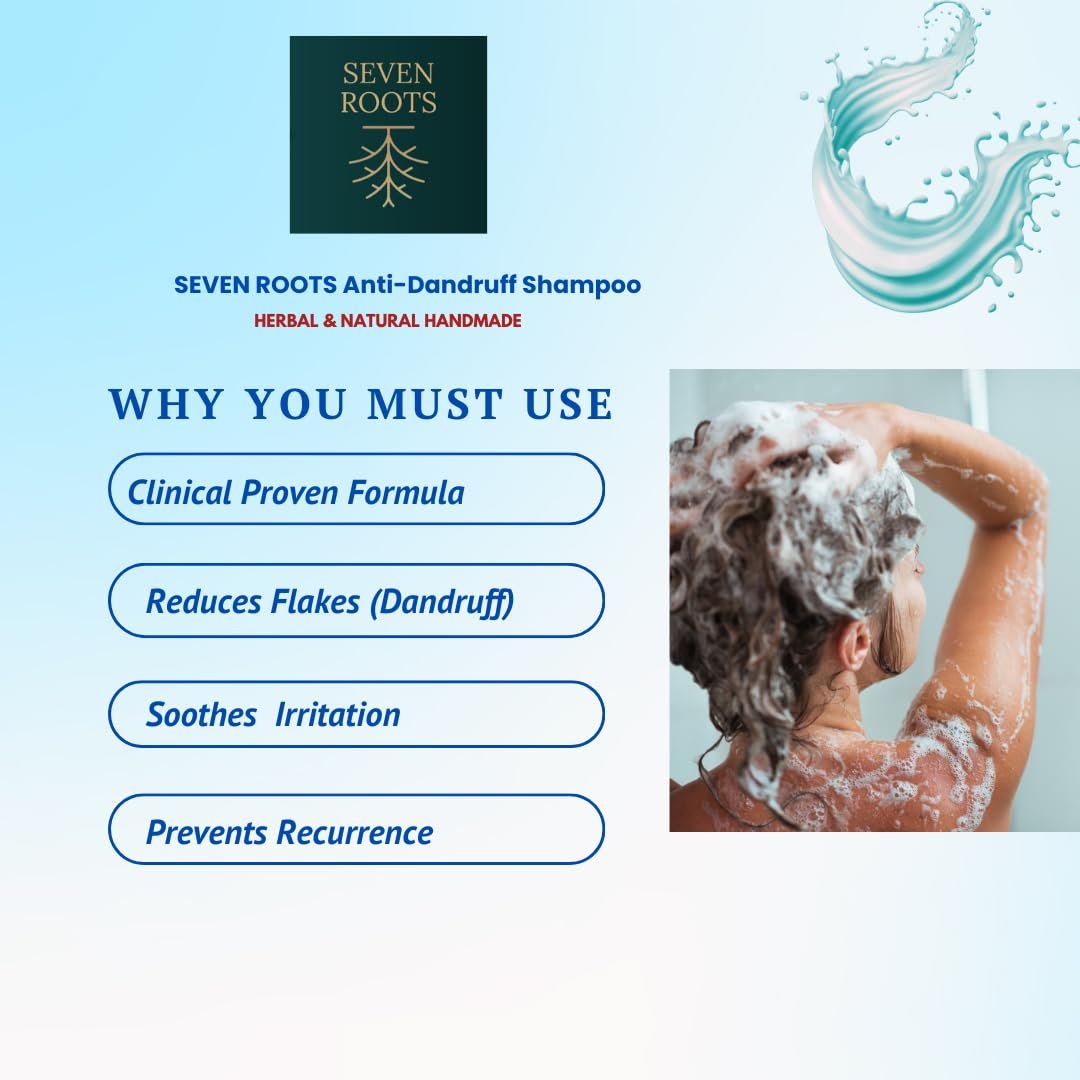 Product Description Say Goodbye to Dandruff Naturally Seven Roots Anti-Dandruff Shampoo is formulated with a clinically proven formula to combat dandruff and prevent its recurrence. Infused with herbal and natural ingredients, this shampoo soothes irritation, reduces flakes, and promotes a healthy scalp.